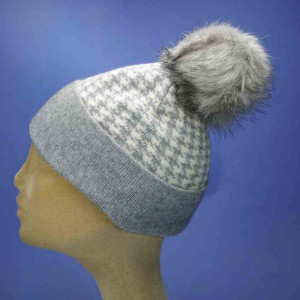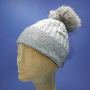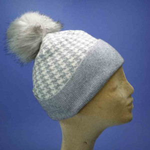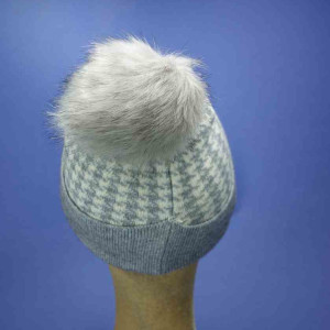 Bonnet avec pompon, coloris gris, 70 % acrylique - 30 % laine, pour femme