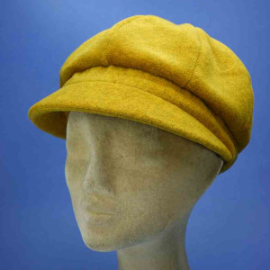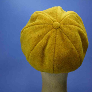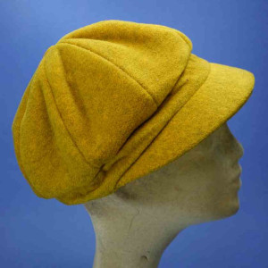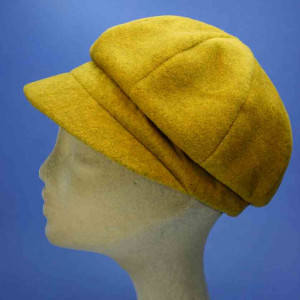 Casquette d'hiver gavroche, coloris moutarde, en polyester polaire waterproof, élastiquée de 54 cm à 58 cm, pour femme