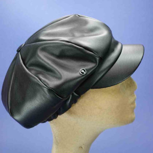 Casquette gavroche d'hiver, coloris noir, en PVC imperméable, élastiquée de 54 cm à 58 cm, pour femme