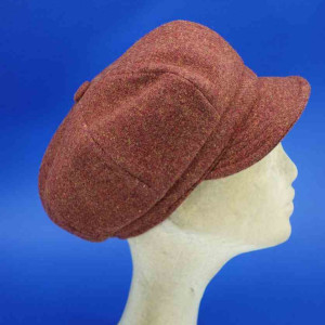 Casquette gavroche, coloris brique, 100 % laine avec doublure en coton, élastiquée de 54 cm à 58 cm, pour femme