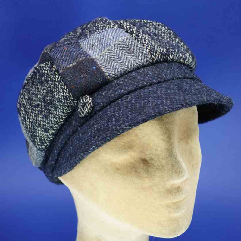 Casquette gavroche femme en laine patch bleu