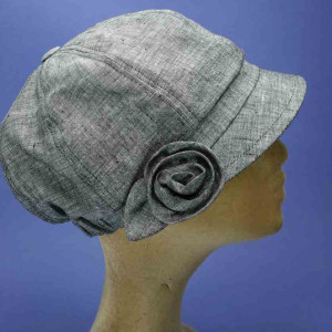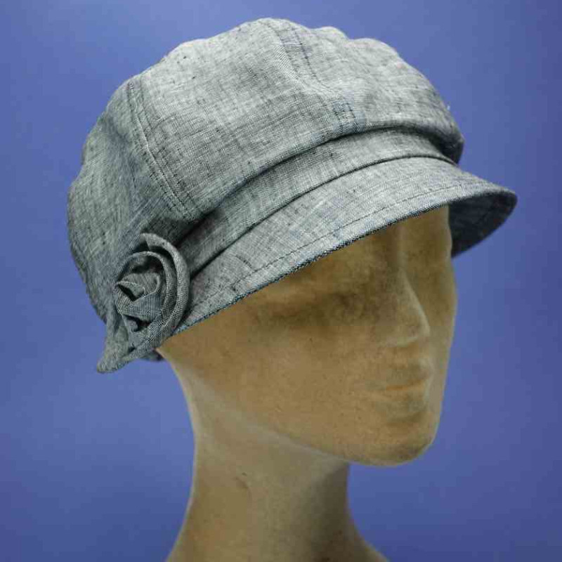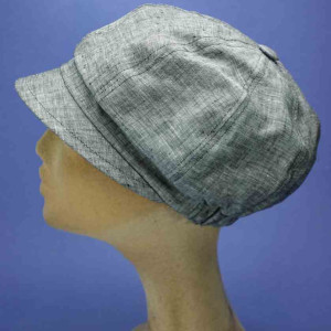 Casquette gavroche petit plateau, coloris gris, 100% lin, élastiquée de 54 cm a 58 cm, pour femme