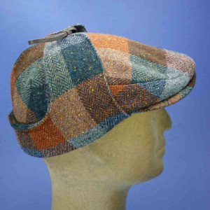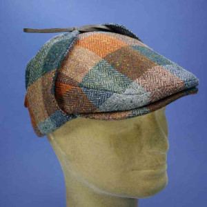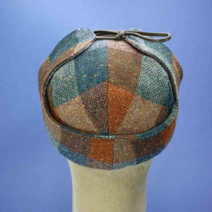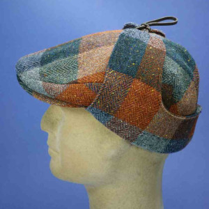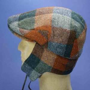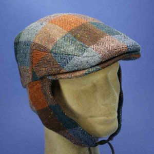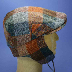 Casquette vintage avec protège-nuque et oreilles, multicolore, 100% laine vierge tweed, pour homme