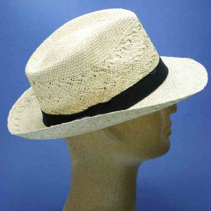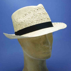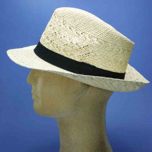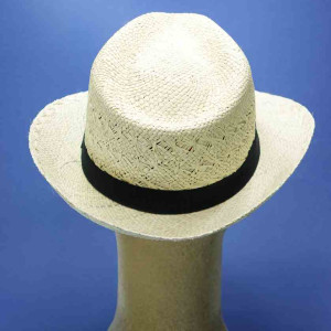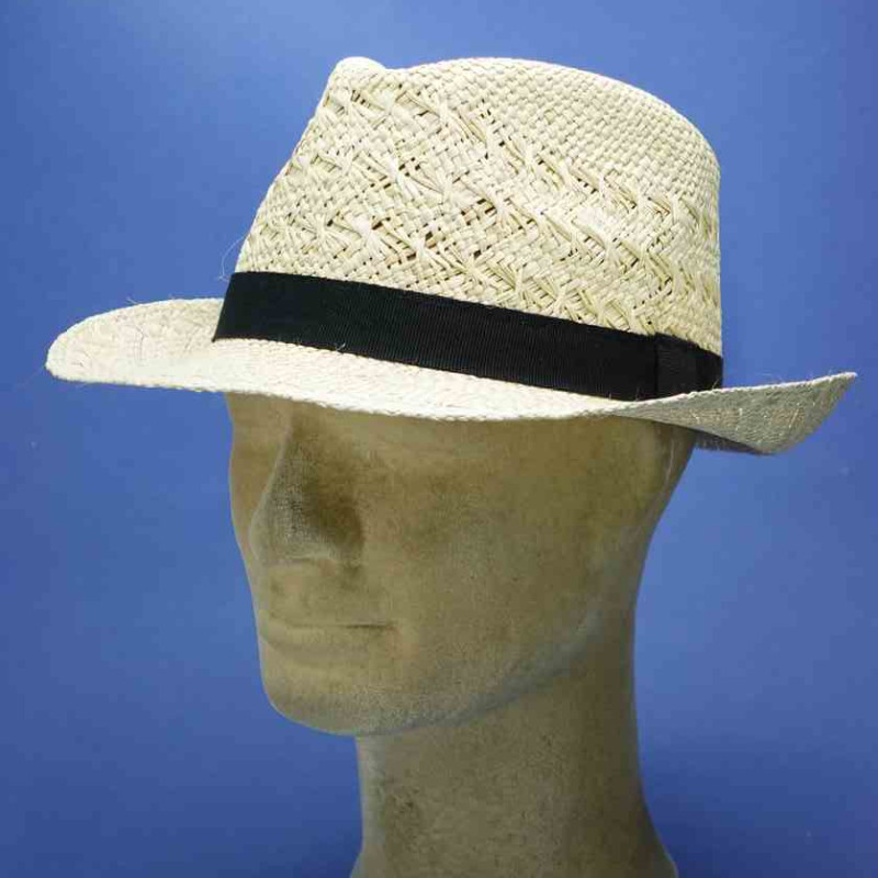 Chapeau Fedora, garniture noire, en raphia tressé, mixte