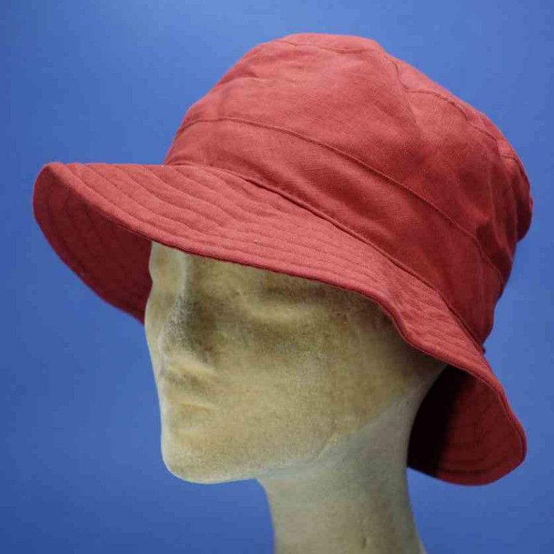 Chapeau réglable à bord moyen, coloris terracotta, 55 % lin - 45 % coton, resserrable par lacet de 54 cm a 59 cm, pour femme