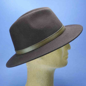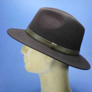 Chapeau feutre de laine traveler chocolat garniture cuir MTM