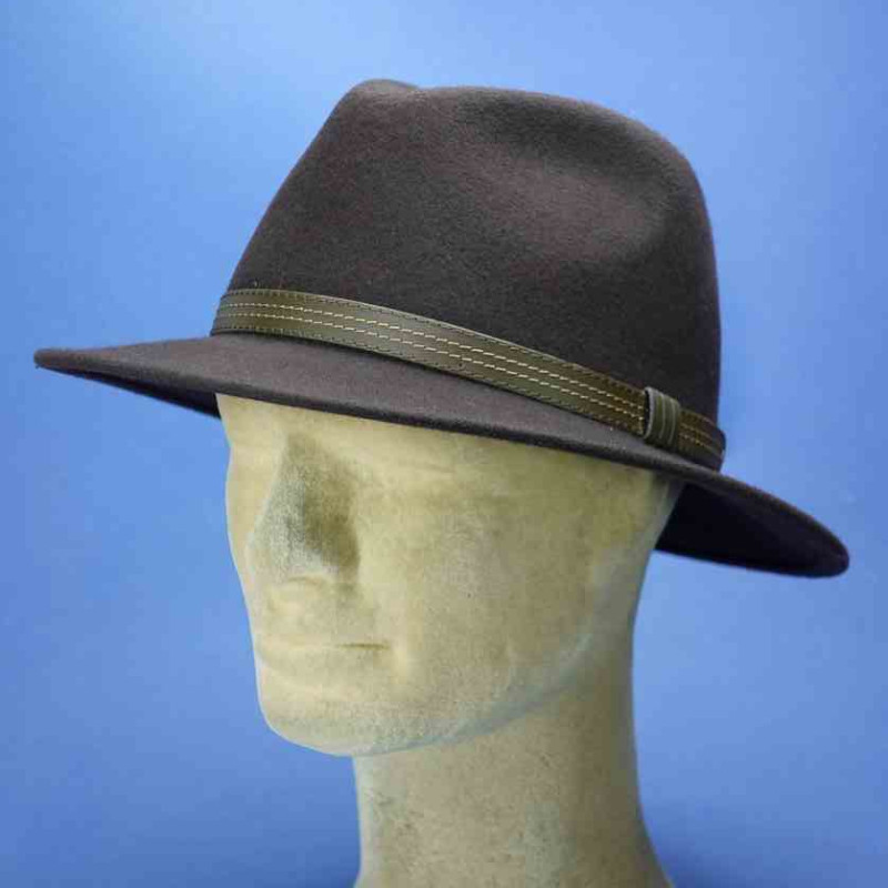 Chapeau feutre de laine traveler chocolat garniture cuir MTM : couleur - chocolat, Mixte - Homme et Femme, taille - 55cm