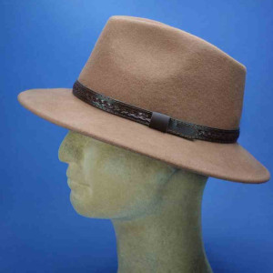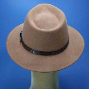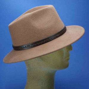Chapeau traveler, coloris camel, 100 % feutre de laine avec garniture en cuir, mixte