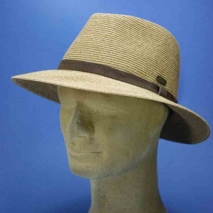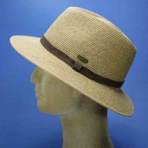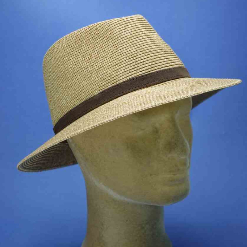 chapeau paille cousue homme garniture cuir toffee