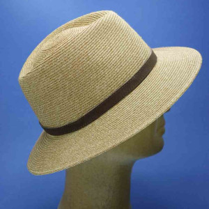 chapeau paille cousue homme garniture cuir toffee : couleur - Toffee, taille - S.54.55cm