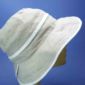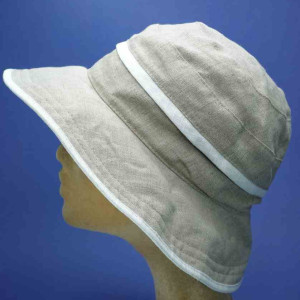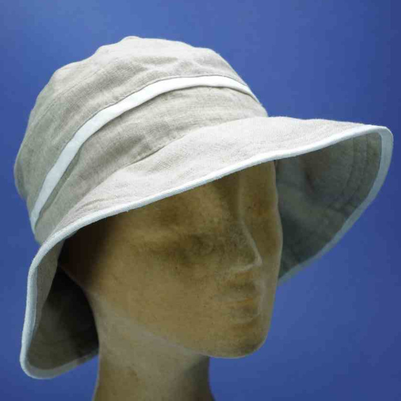Chapeau bob, coloris beige, 100% lin, pour femme