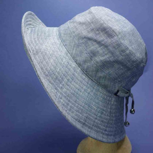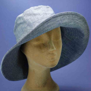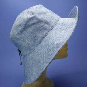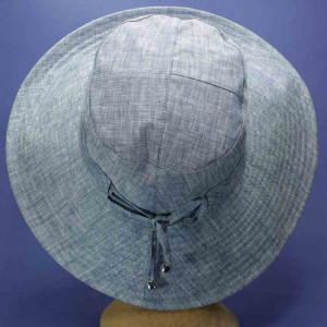 chapeau resserrable lin grand bord femme : couleur - bleue, Taille Réglable - par lacet de 54cm à 58cm