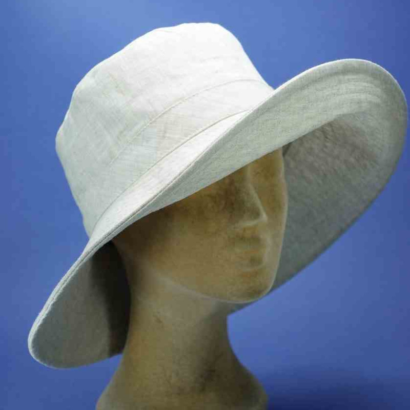 Chapeau à grand bord, 100 % lin, réglable par lacet de 54cm à 59cm, pour femme