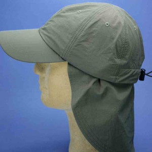 Casquette randonnée, anti-UV UPF 40+, coloris kaki, en supplex dupont de nemours, réglable de 54 à 60 cm, mixte