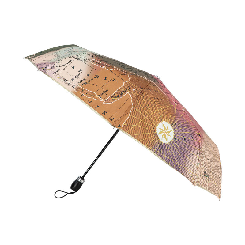 Parapluie Piganiol pliant doté de 8 baleines en acier, anti-UV UPF 50+, motif carnet de voyage, pour femme, de fabrication française