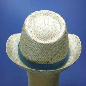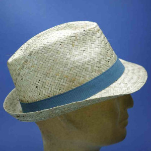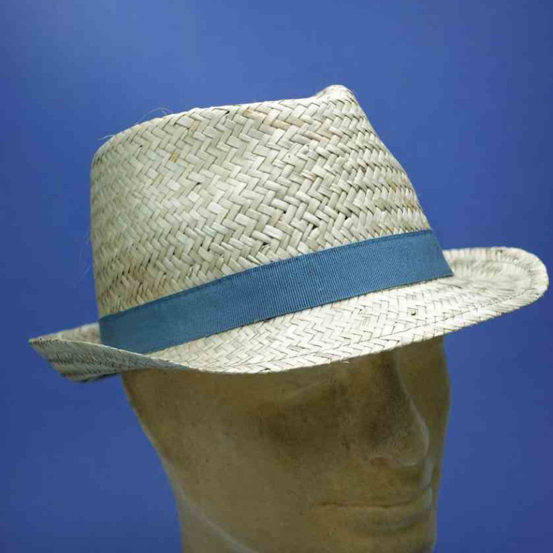 Chapeau Trilby, garniture indigo, en paille tressée, mixte