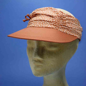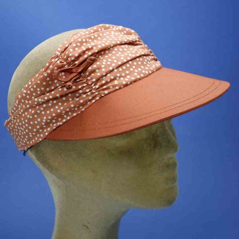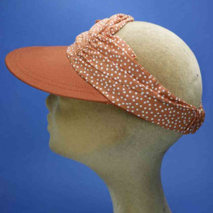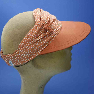 Visière fashion, coloris bicolore pois paprika, en coton et lin, élastiquée de 54 cm à 58 cm, pour femme